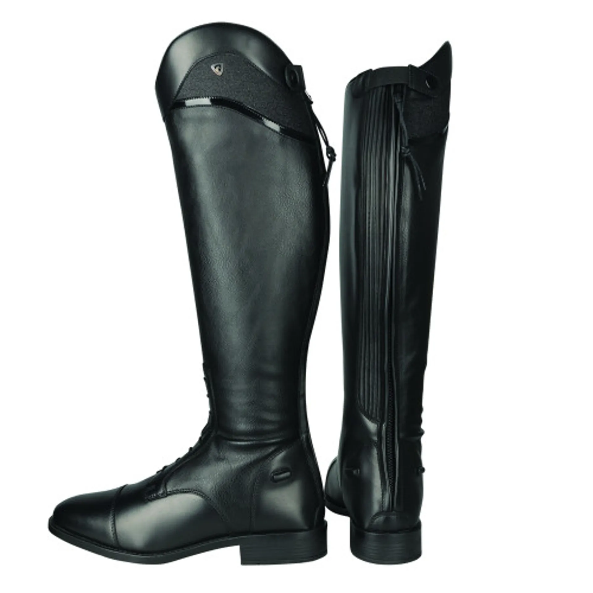 Smart and sophisticated - the atrani riding boot is a traditional field boot with the addition of a shaped shimmer panel and patent strip. The leather inner and foot create a durable and flattering look, with synthetic outer to allow a comfortable contour to the leg. Featuring elasticated back panel for superior comfort, ease of fastening and close contact feel and sturdy zip fastening with secure top press stud closure. This streamlined boot has been innovatively designed to be comfortable, stylish and supportive