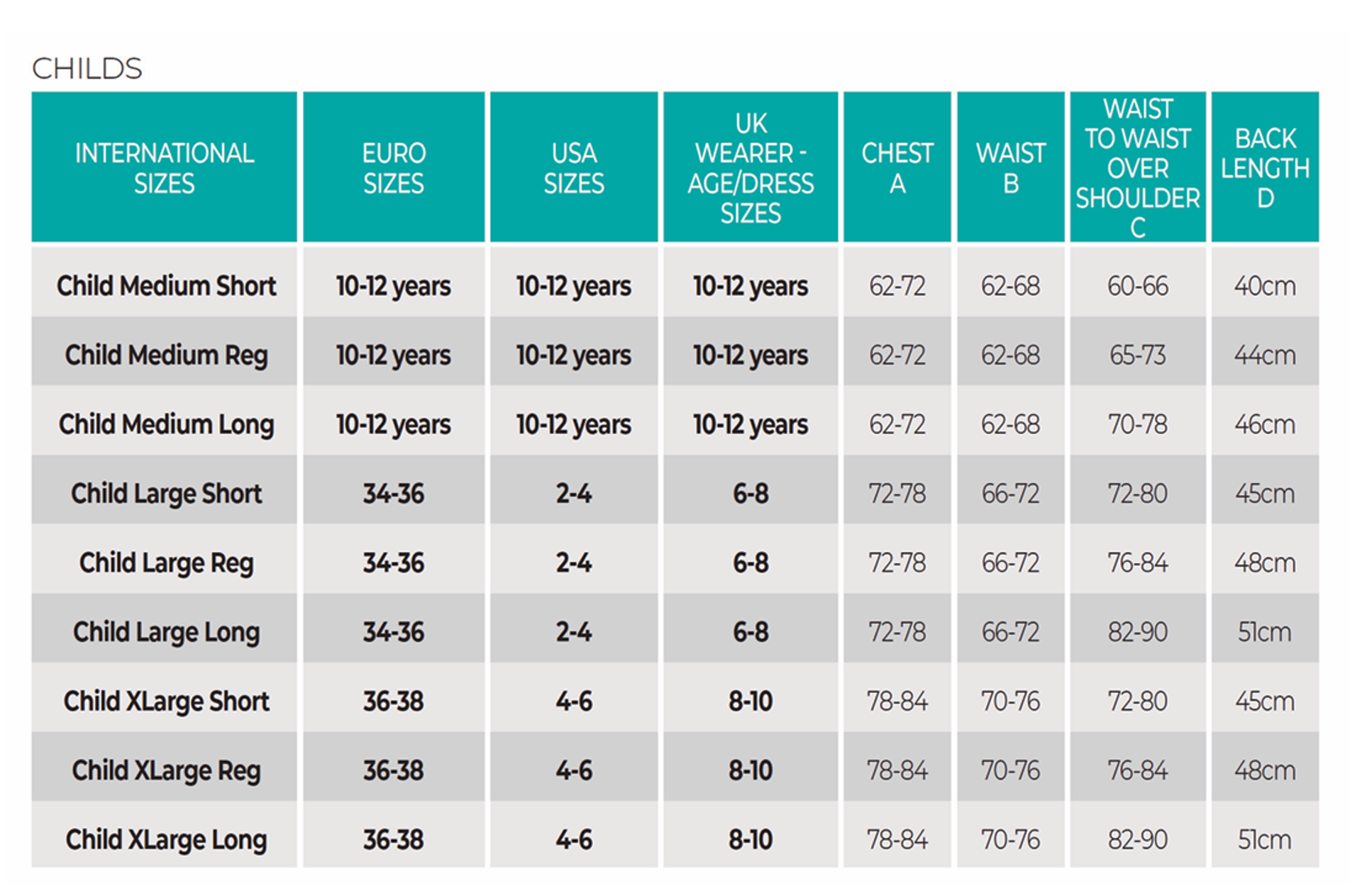 Children Medium – Children X Large